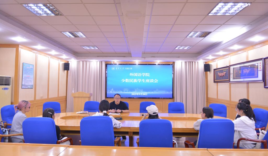 为助力少数民族学生成长成才,营造民族团结进步的良好氛围,9月28日,外国语学院于北区10号教学楼209会议室召开少数民族学生座谈会。学院党委副书记、副院长于龙和2025级少数民族新生参加。