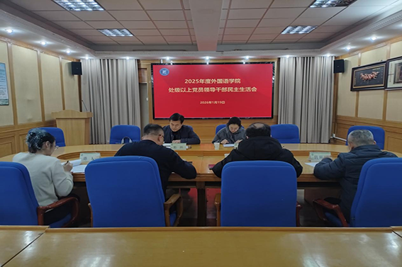 1月19日,外国语学院党委召开2025年度处级党员领导干部民主生活会,学校督导组成员郭帅、王娜到会指导并作点评讲话,学院党委书记于龙主持,学院领导班子成员参加会议。