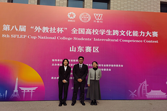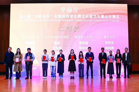 10月26日,第八届“外教社杯”全国高校学生跨文化能力大赛山东赛区决赛在山东师范大学落下帷幕。我院2023级英语(师范)专业程阅微、人文学院2023级汉语言文学(师范)专业符艺文和化学化工学院2024级化学工程与工艺专业张翼翔组成鲁东大学代表队参赛并荣获二等奖。我院教师卢兵和林明东获评“优秀指导教师”。