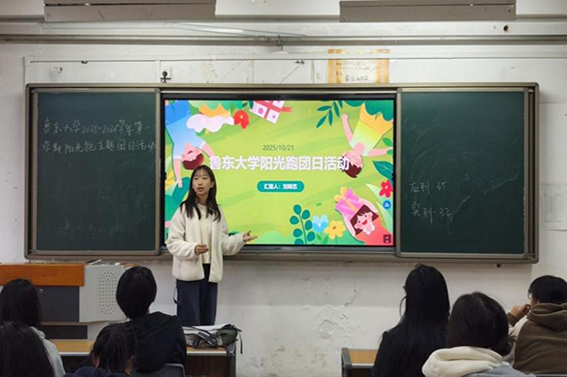 学院以“线上线下可视化+班级沉浸式”为核心,构建多渠道、全覆盖宣传模式,全面铺开“阳光跑”主题宣传工作。线下精心设计主题海报,张贴于学院公告栏、走廊等醒目位置,以鲜活风格吸引学生关注;利用二楼大厅电子屏滚动播放“阳光校园跑 Youth Chases The Glow”双语标语,同步通过学院公众号推送活动资讯,让运动号召融入日常场景。班级层面依托主题团日活动,各班团支部结合《鲁东大学2025-2026学年第一学期“阳光跑”实施方案》,从使用规则、奖惩机制、注意事项等方面深入讲解,系统传递活动核心理念,并组织观看相关视频,以真实场景直观展现运动价值。