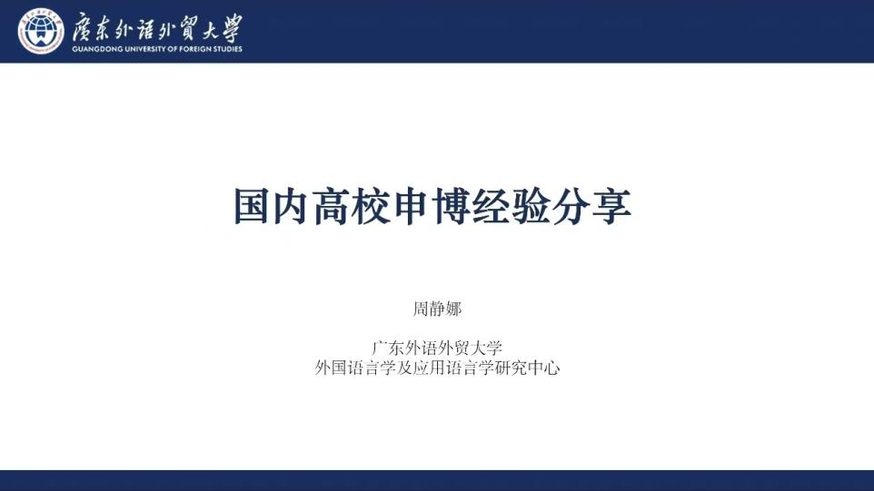 11月21日晚,外国语学院通过腾讯会议线上举办“国内高校申博经验分享”专题分享会。本次分享会特邀广东外语外贸大学外国语言学及应用语言学专业在读博士周静娜担任主讲嘉宾,围绕国内高校博士申请流程与备考策略进行系统分享,学院部分研究生参加了会议。