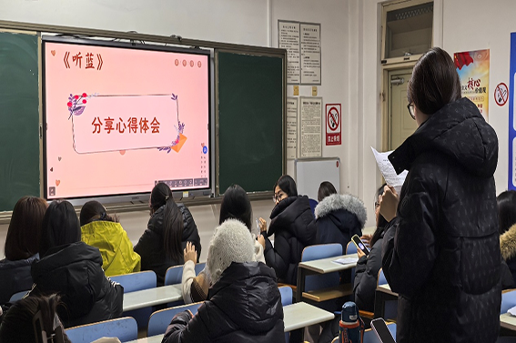 活动现场,同学们围绕桑溪的散文集《听蓝》展开深度研讨,从作品“草木记”“字里行间”“履痕”“那城・那山”“时光”五个核心章节切入,细致梳理出书中自然观察、阅读感悟、旅行见闻与故乡情结相互交织的独特叙事脉络。在分享交流环节,同学们聚焦《喜鹊有窝》《故乡老屋》等经典篇目,踊跃分享自己对书中故土眷恋之情与亲情暖意的真切体悟,并积极探讨如何将这部作品中“自然之美与人文情怀相融”的特质,转化为外语翻译与跨文化传播过程中的独特表达视角。
