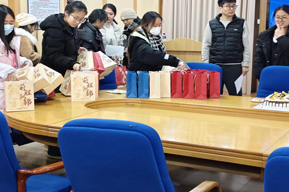 随后,辅导员王海宁、吕文蓉老师有序为学子们发放考研礼包。礼包设计精美,其上印有“金榜题名”“前程似锦”的烫金祝福语,不仅包含了备考所需的实用物资,更凝聚着学院对学子们的殷切期盼与美好祝福。