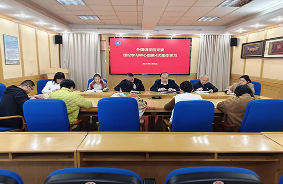 2026年4月7日,外国语学院党委理论学习中心组以“深入学习领会习近平总书记关于树立和践行正确政绩观的重要论述”为主题,开展2026年第4次集体学习。学院党委书记于龙主持会议并讲话。