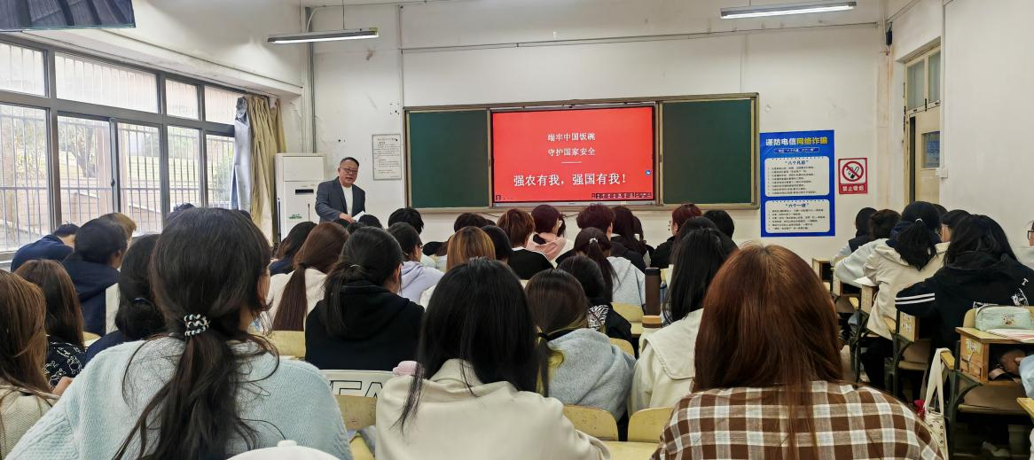 为深入学习贯彻习近平总书记关于粮食安全、乡村振兴的重要论述,引导广大青年学生将个人成长融入国家发展大局,4月20日下午,外国语学院党委书记于龙为学院2025级学生讲授题为《筑牢粮食安全根基,打造乡村振兴齐鲁样板》的思政课。